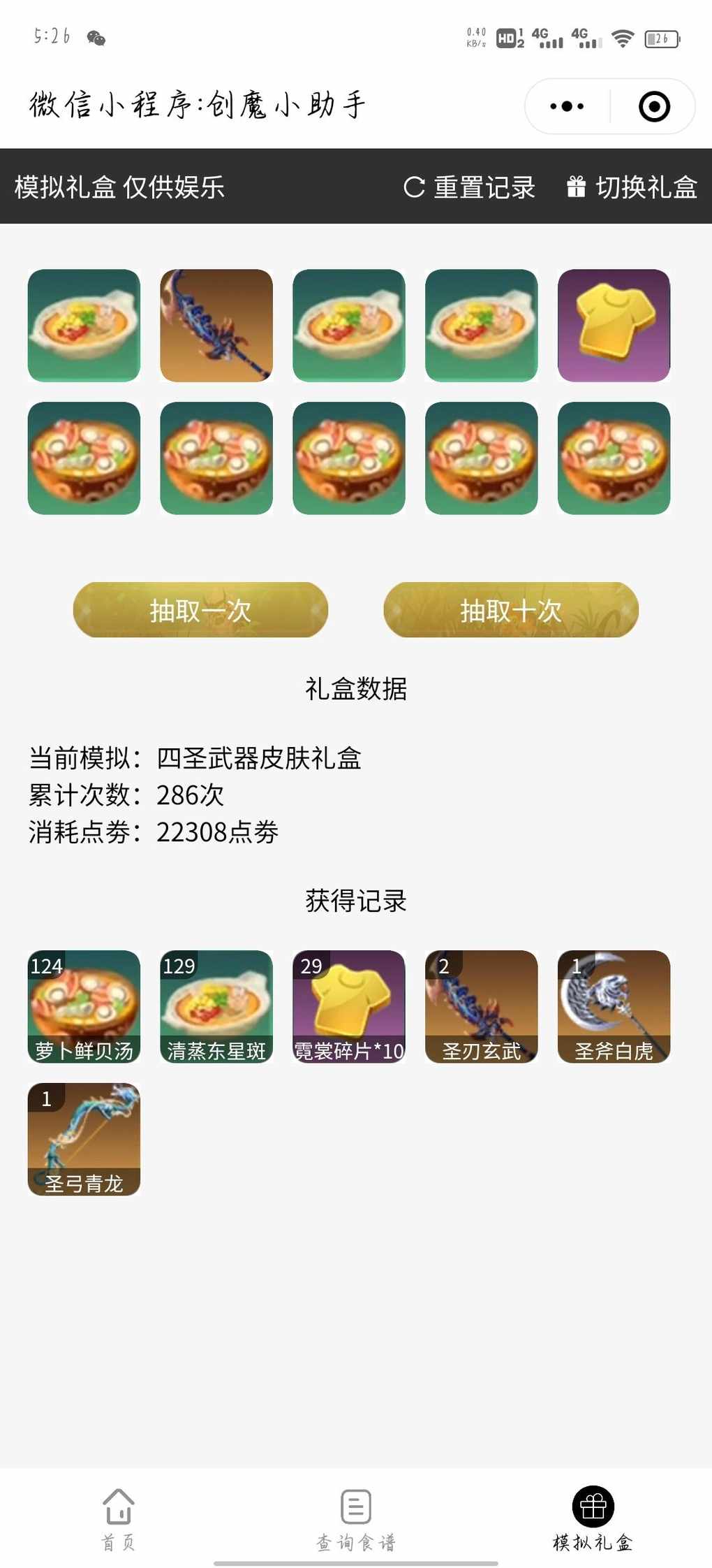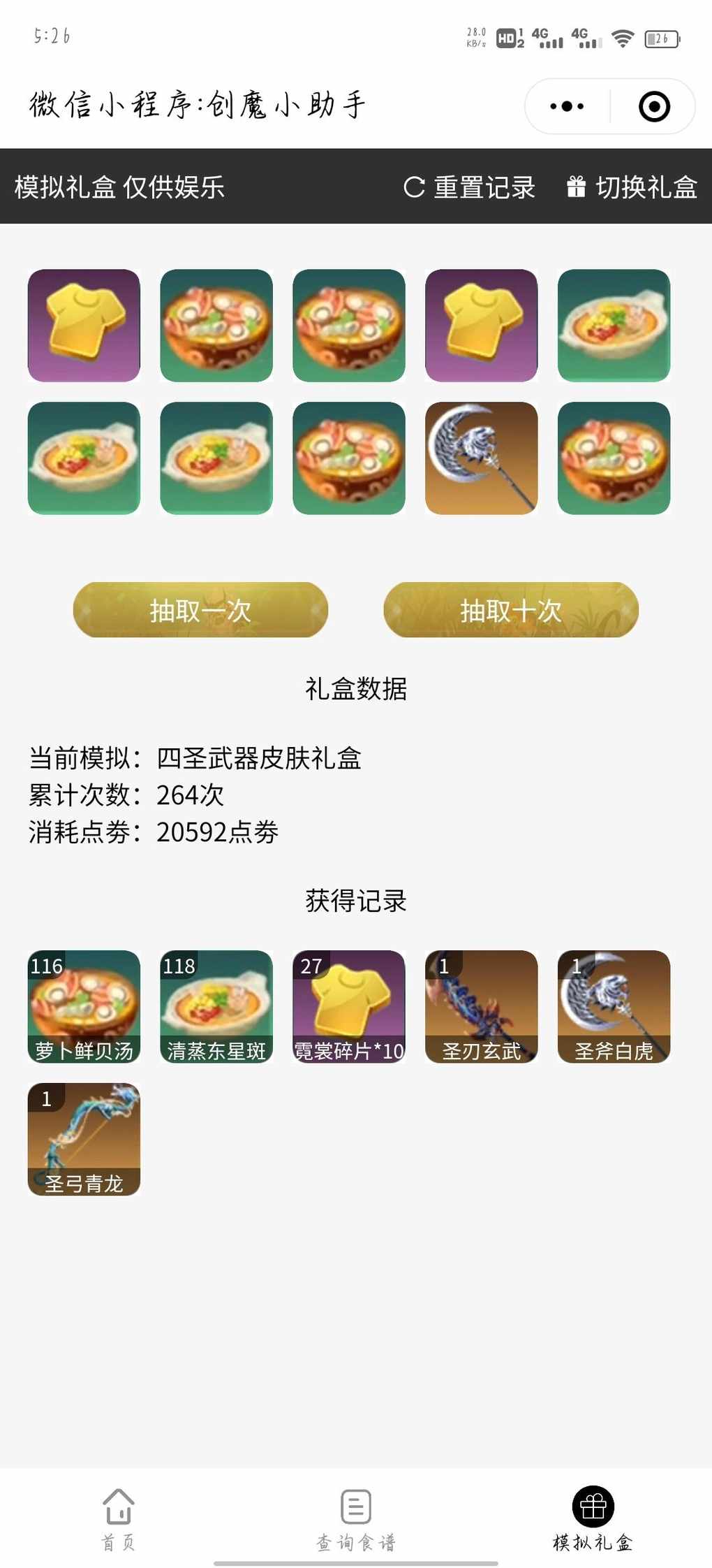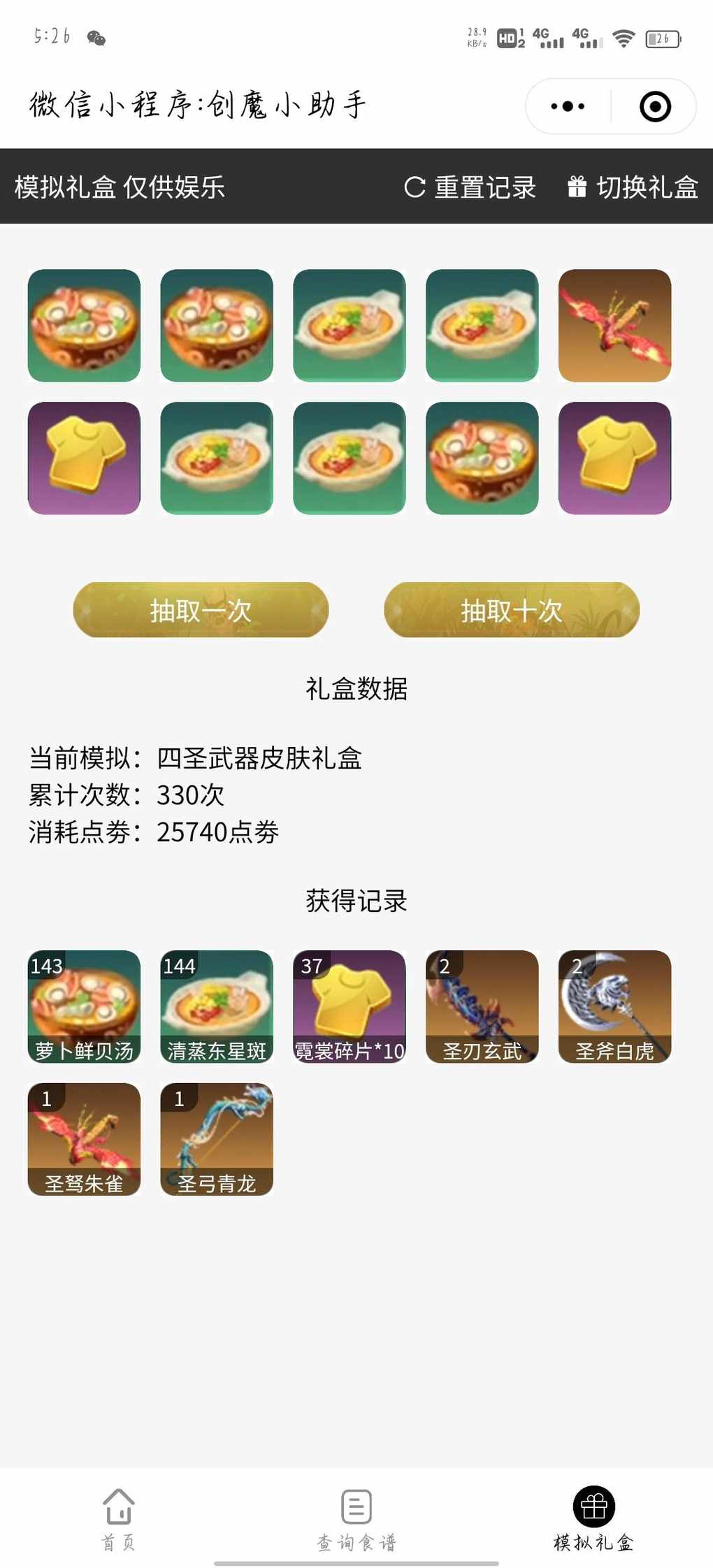 游戏里没钱抽只好来模拟礼盒过过瘾了,但是万万没想到330次才全抽出来,嘶中间还出了重复的