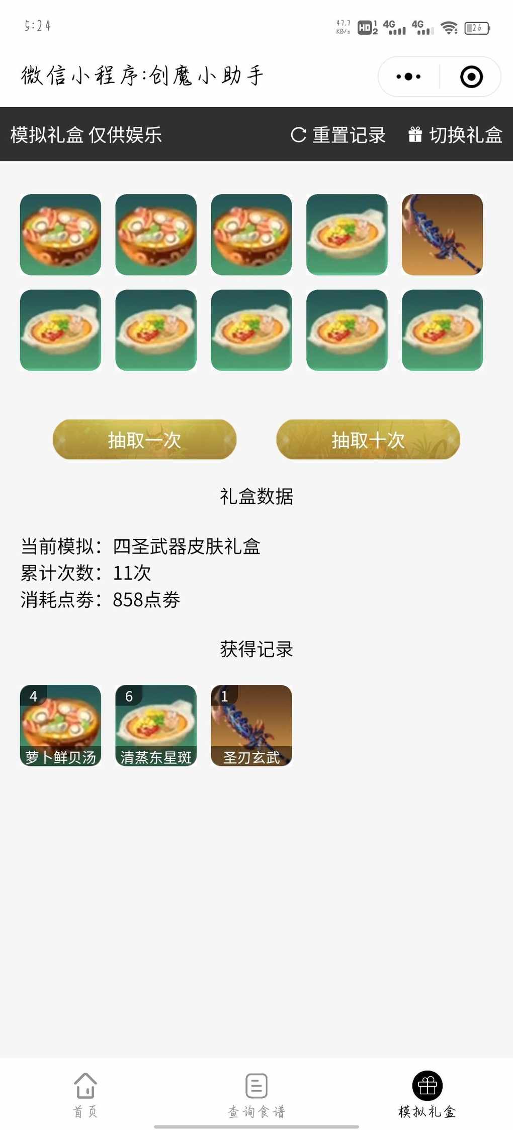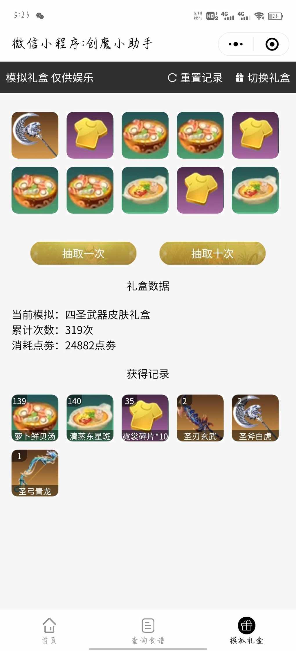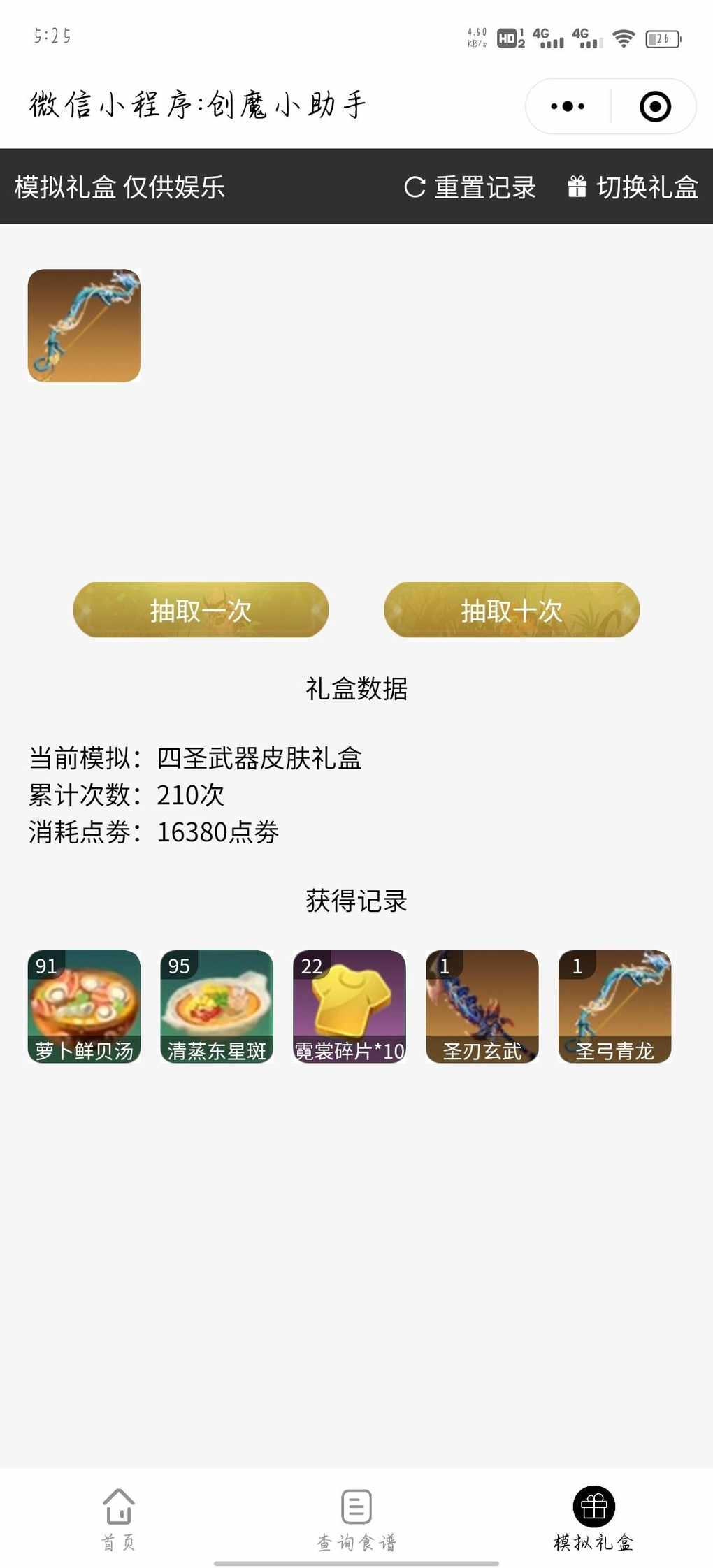 游戏里没钱抽只好来模拟礼盒过过瘾了,但是万万没想到330次才全抽出来,嘶中间还出了重复的