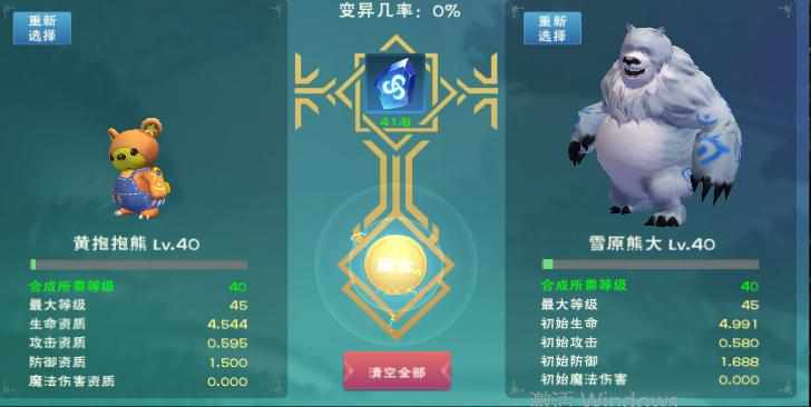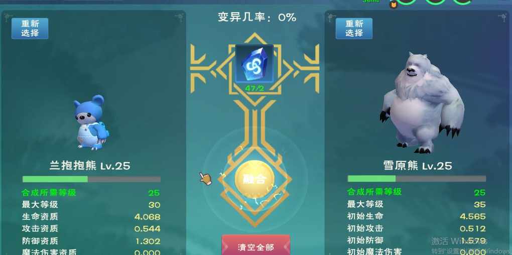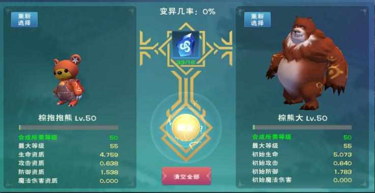 抓了整整三天,才凑够所有极品。。。 本来准备只要有一个资质跟不上攻略就不合了 没想到一路绿灯 棕抱抱更是极品中的极品 当时就感觉稳了~ 前面还合了个可1 问题出在黄抱抱。。当时资质没够4.5,硬着头皮合,浪费俩极品熊大(黑历史) 最后我成功了~