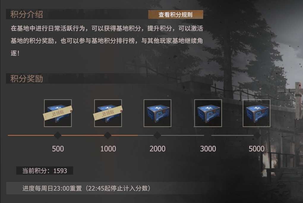 ③基地积分榜宝箱获取 除了每日任务的宝箱外,每周还有基地积分榜宝箱也可以开出大量物资(前两个宝箱有零件)