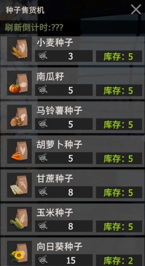 中作物种子可以在港口贩卖机使用零件购买(每天刷新),也可在食物箱中随机掉落