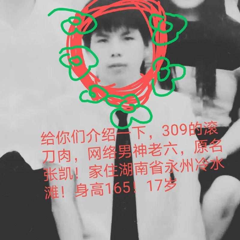 创魔混战309滚刀肉,网络男神老6,原名张凯,住湖南省永州冷水滩,身高165,17岁