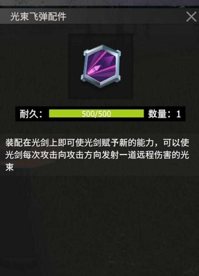 光剑的技能配件也是很重要的,首先是最高贵的“伤害提升配件”无视任何条件在基础上增加一百点固定伤害。拥有远程攻击方式的“光束飞弹”配件,此配件的设定也是暗藏玄机稍后介绍。然后就是最没用的移速配件。。。大家当个笑话看就行了。