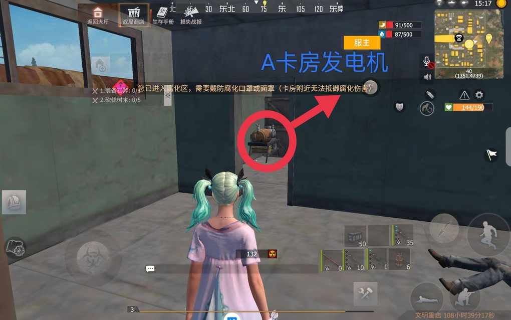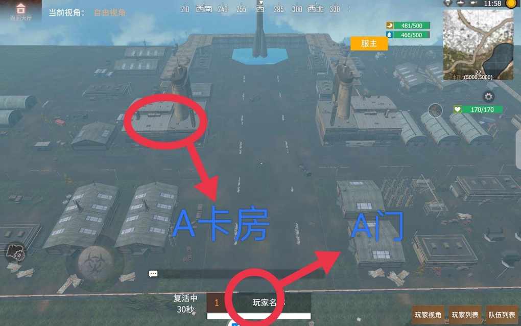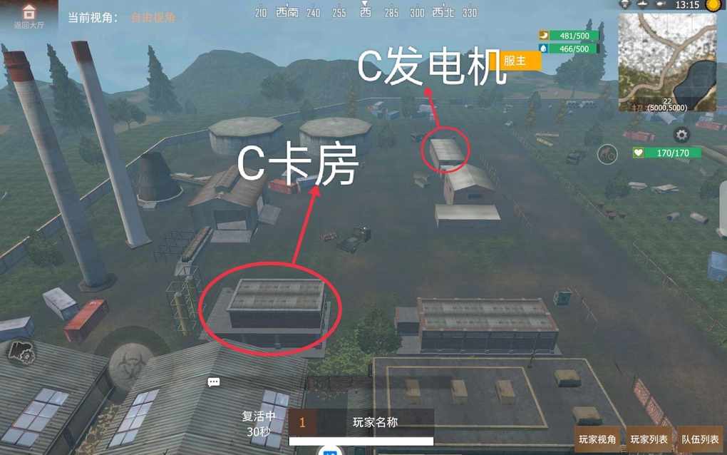 C卡房位置以及发电机位置。