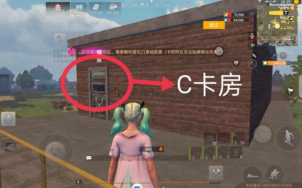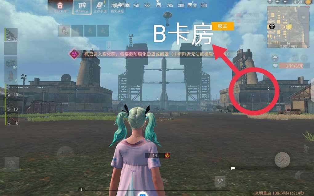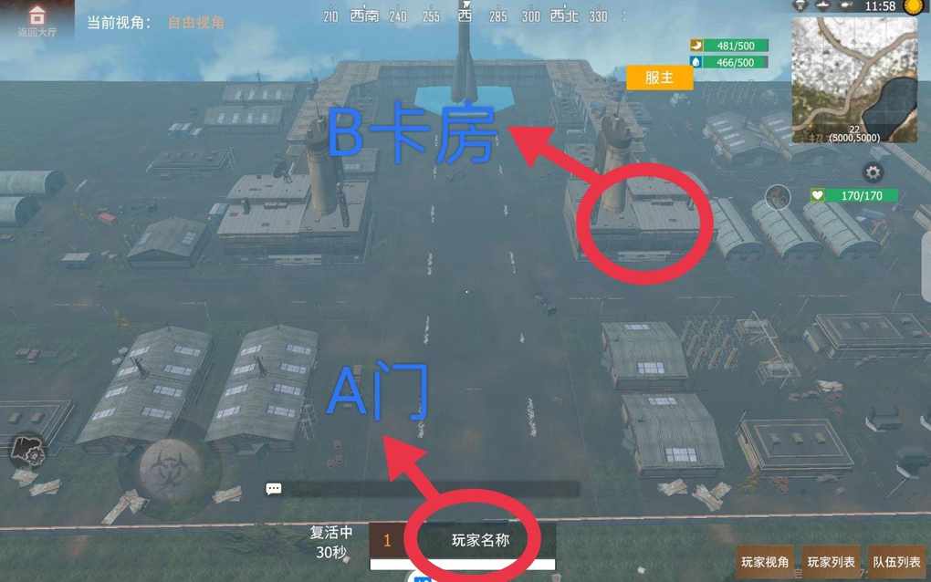 B卡房位置,从A门进去往前走,然后往右走一下就倒了B卡房位置。