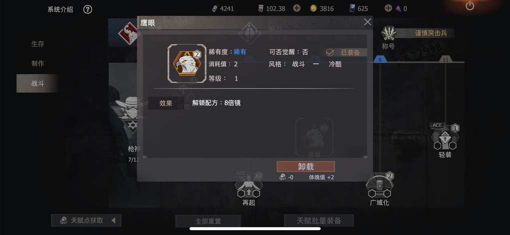 为什么点了鹰眼但是没有解锁八倍的蓝图