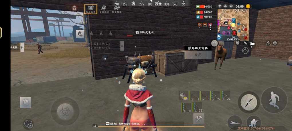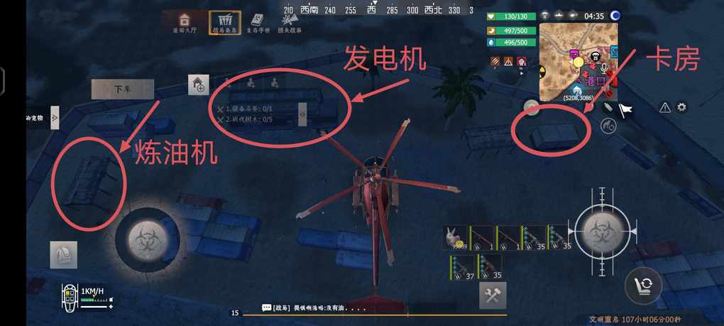 我们先从正面进去然后就能看见一个卡房,发电机就在卡房前面一点的房子里面,在往前面走一点就是炼油机了。
