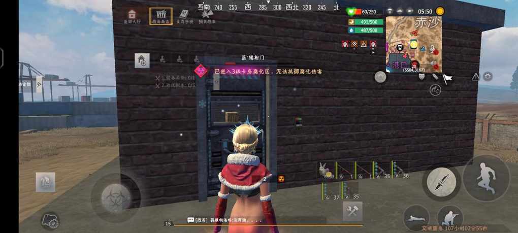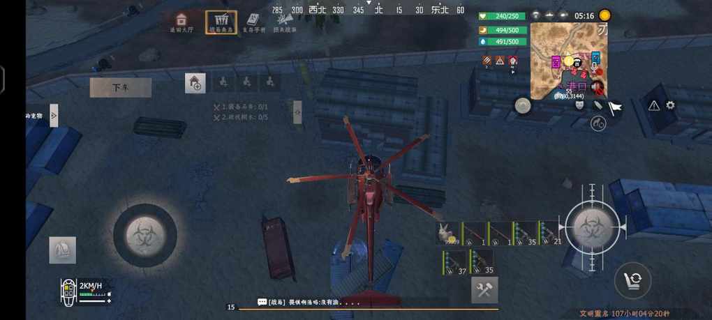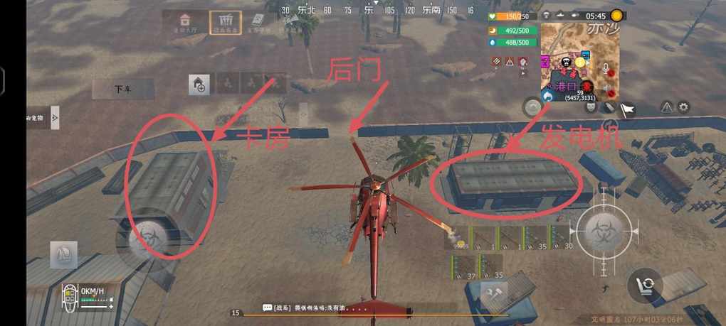 军火的位置在集装箱的位置找到下面的位置就可以找到军火箱了,圈了红圈是位置百分之50的概率刷新军火箱百分之50的概率刷新军火箱。没有圈红圈的就是百分百会刷新的。
