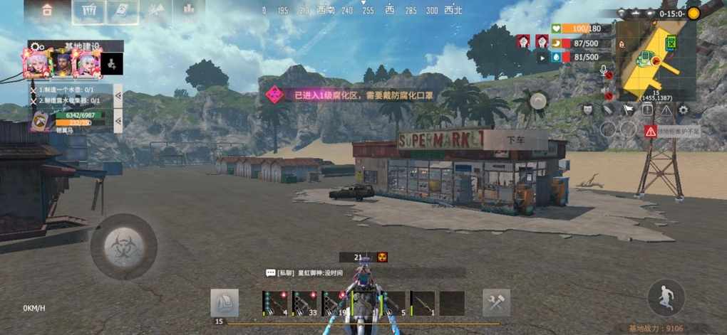 卡房刷完后往超市这个方向来,在左手边会有一直小僵尸。喷子轻松打掉。超市里面有两只小僵尸。我们可以站在门口刷掉他们再进去搜刮物资。超市里面有一个工具箱,两个补给箱,三个食品箱。