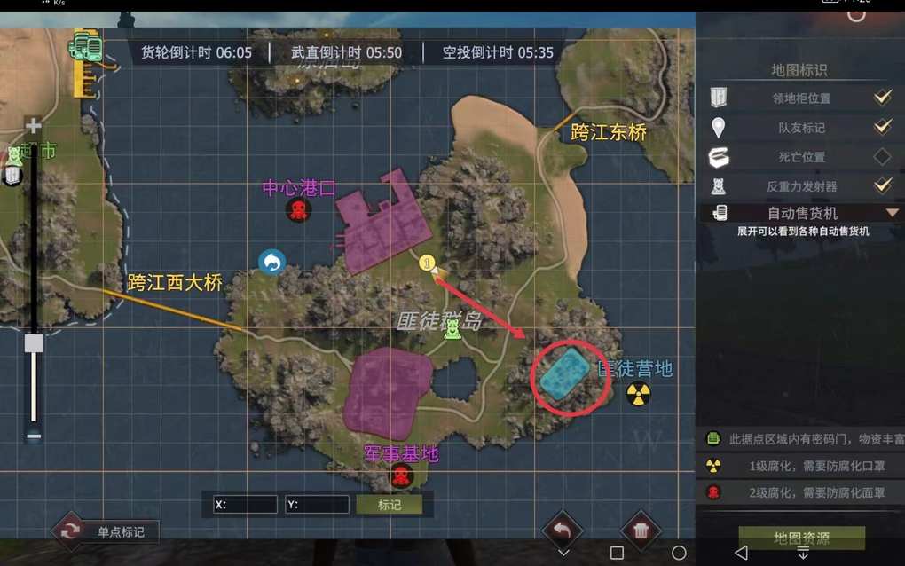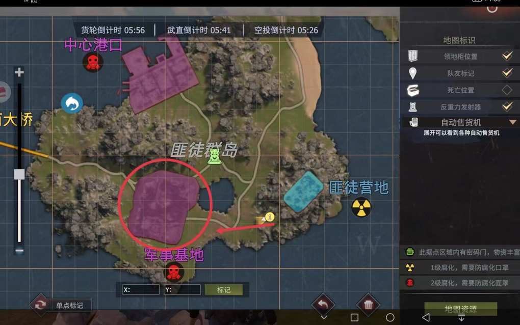 (匪徒营地)刷完后 这里樱桃也是没遇到人 也是准备去(军事基地)看看有没有人 看下图,樱桃也是给宝子们标出来了