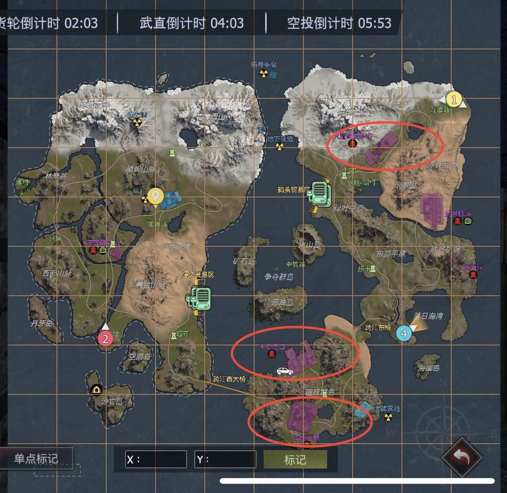分别在于【火箭基地中心】【中心港口】【军事基地】