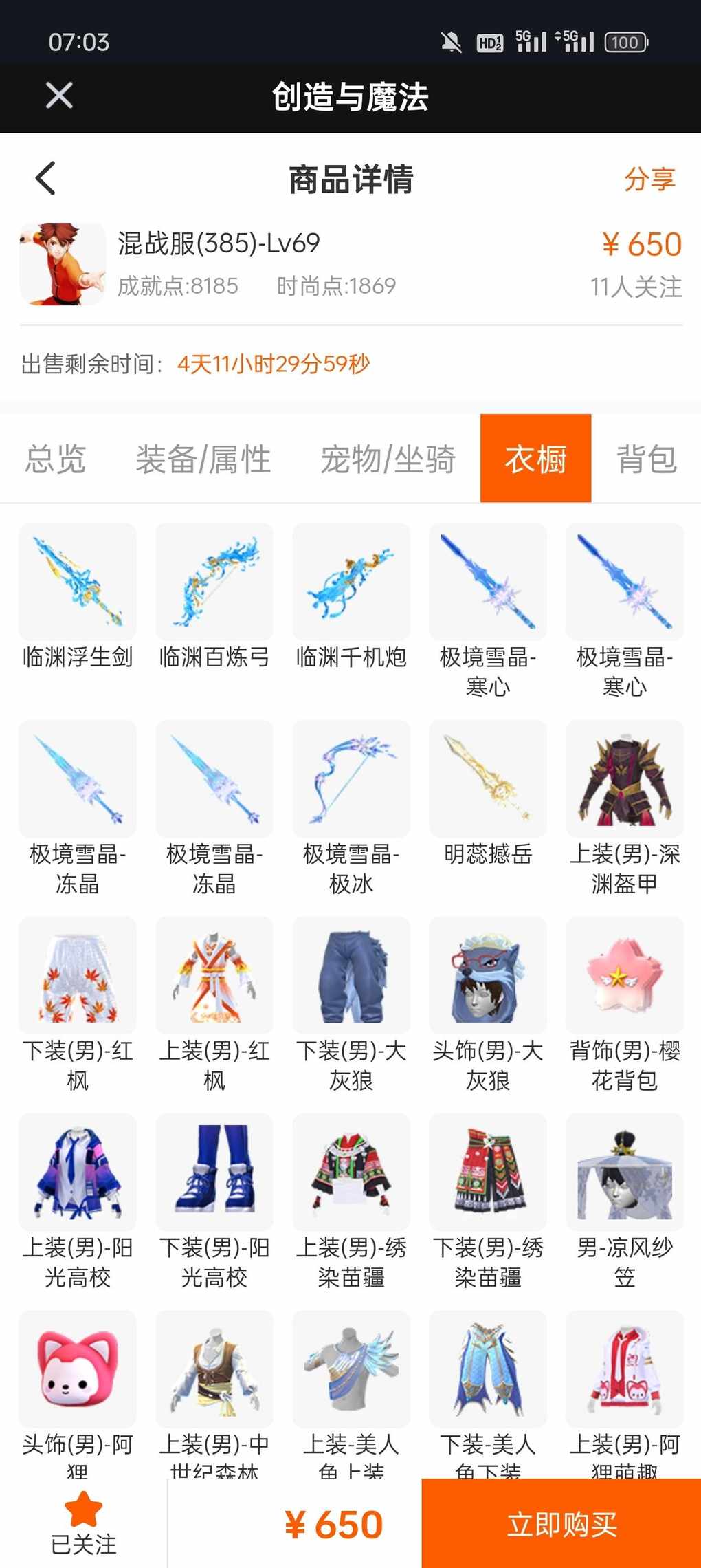 快来看看新上架的角色~区服:混战服(385)-角色等级:Lv69https://jiaoyi.yingxiong.com/?to=%2Fgoods%2F37599来自舱宝鹅(创造与魔法)