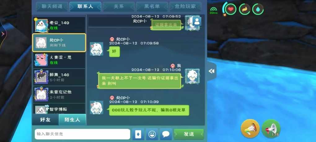 104~173我ID是小雨呀104~173的小丑 ぇ青涩·思 说我黑收我东西的是傻子说完就拉黑 我一下线就在大厅挂我我一上线屁都不放还摇人挂,我是骗子,到最后连证据都拿不出来