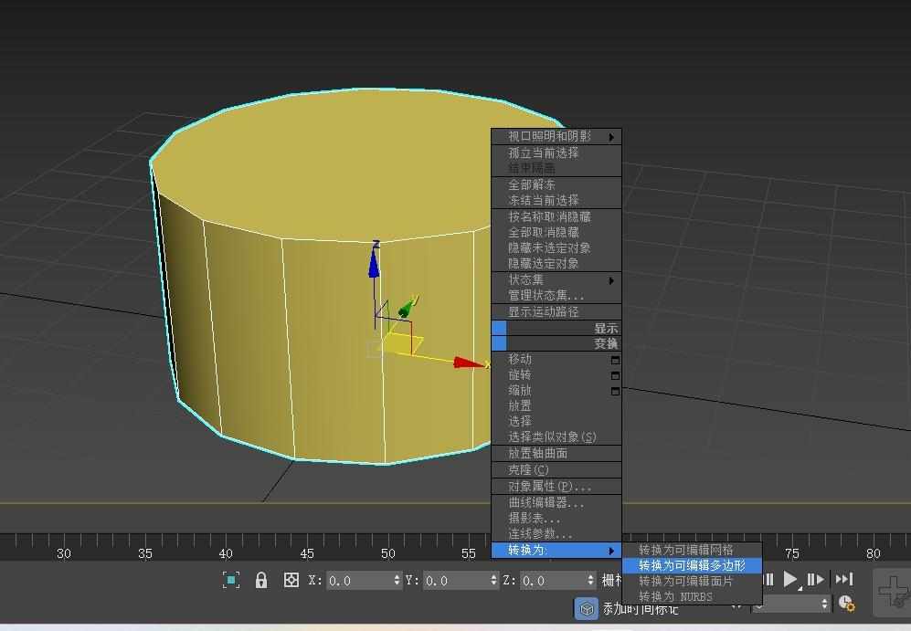 2.把xyz坐标归零 鼠标右键点转换为可编辑多边形