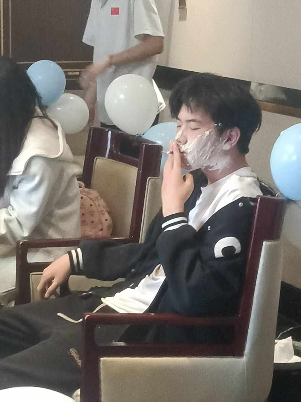 在脸上的蛋糕好吃