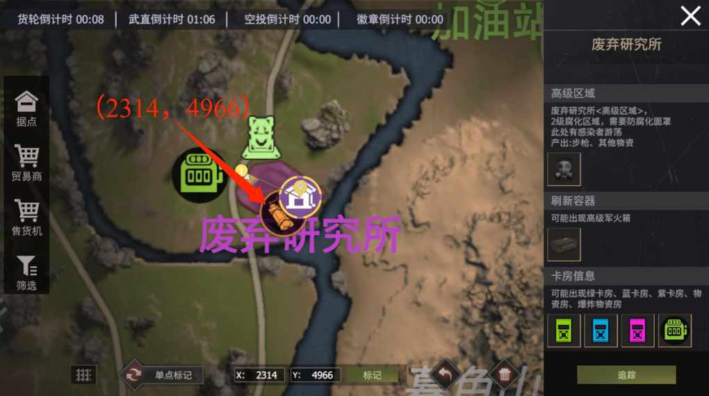 在探索废弃研究所的过程中,精确掌握这些地点的位置信息以及相关操作流程是十分关键的。无论是寻找卡房获取资源,还是开启密码门获取其中丰富的物资,每一个步骤都需要我们认真对待。这不仅需要我们对各个地点的方位有清晰的认识,还需要妥善准备好对应的密码条等物品,以确保我们在探索过程中能够顺利进行,获取更多的资源和收益。
