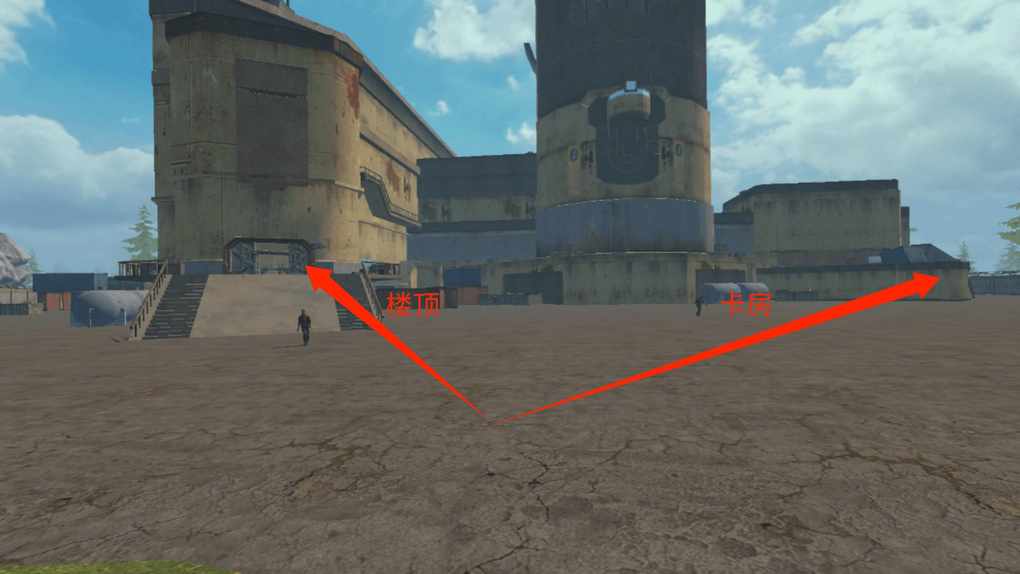 接下来,我们返回原来卡房入口,来到有楼梯的地方,选择有楼梯的地方然后走上去,上面的视野就会更加的宽阔。