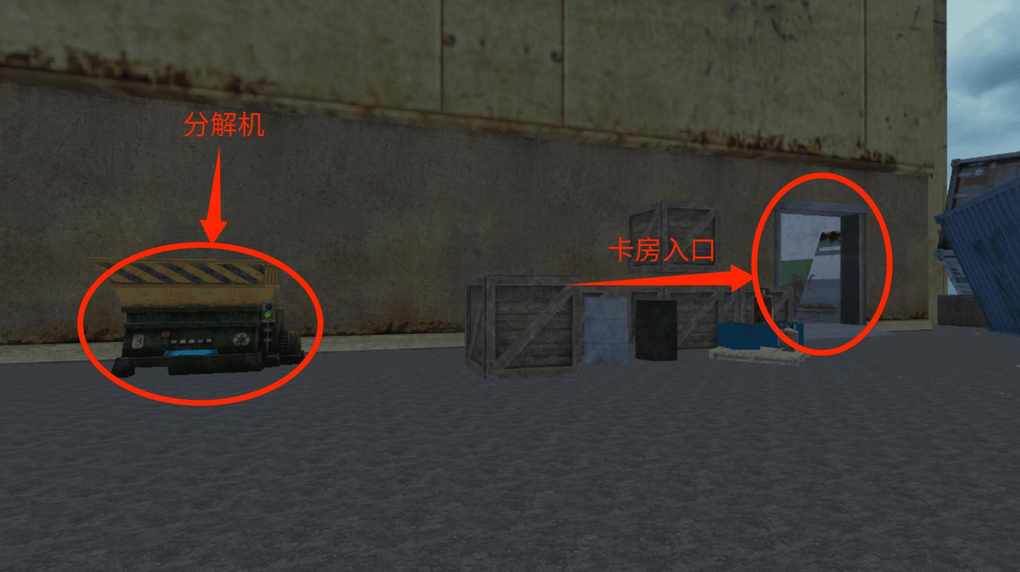 当小伙伴们走到这个入口时,会发现入口的左侧有一个通道。左侧的通道是通往卡房,第一个卡房就位于入口内部的右侧位置,第一个卡房的坐标为(2209,4940)。