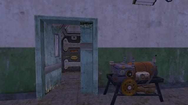 之后,小伙伴们行至如下图所示的位置时,能够看到正前方有一道密码门,左侧有一个入口,左侧入口内部的物资也较为丰富,并且有一定几率刷新军火箱。