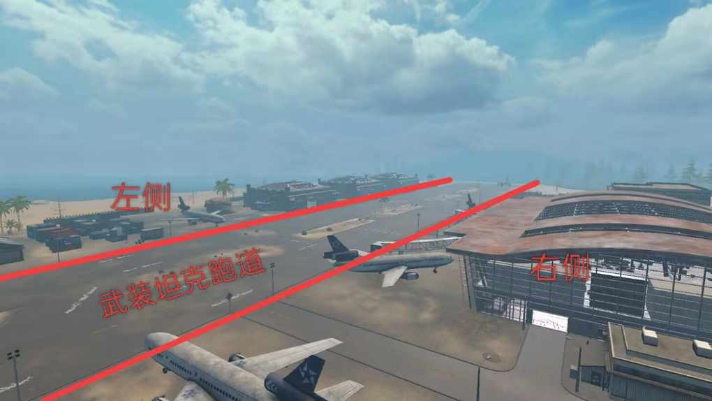 下面我们把民用机场划分为左、武装坦克跑道、右三个区域来进行详细的讲解。