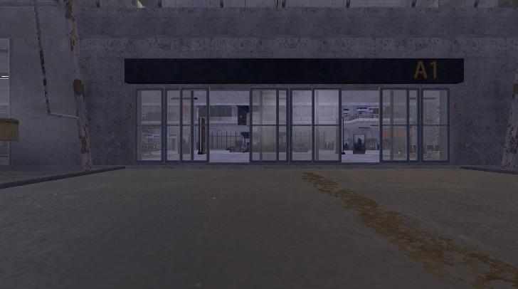 先看右边区域,其中心部位建有一座小型候机厅,厅内设有一个卡房。