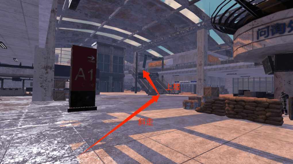 进入候机厅后,朝东北方向望去便能看到一个楼梯,沿此楼梯上行,不过候机厅内怪物数量较多,诸位小伙伴务必小心谨慎。
