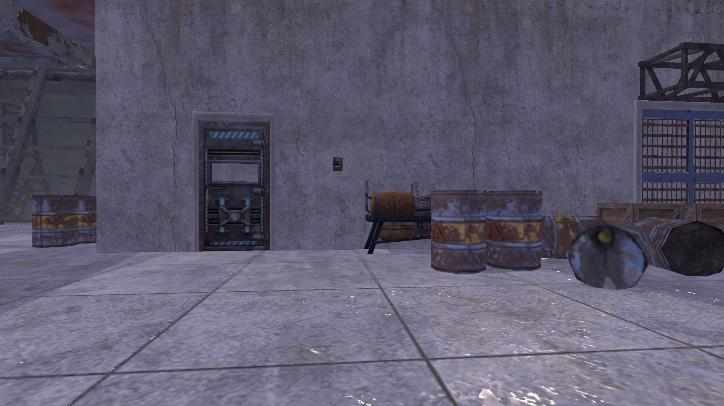 在走廊的中间路段设有一个卷帘门,透过此卷帘门能够查看卡房内的物资是否已经刷新。再稍微往前行走一段距离,就到达了第一个卡房的所在之处,其发电机就位于卡房门口。