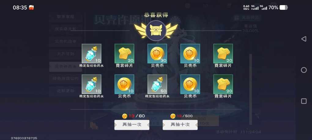 我的也是1300多贝壳币,就220霓裳碎片
