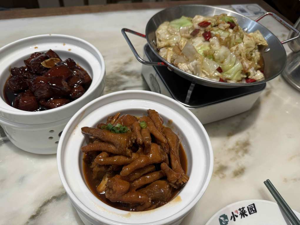 3:主食一份(红烧肉,干锅包菜,香辣鸡爪煲)