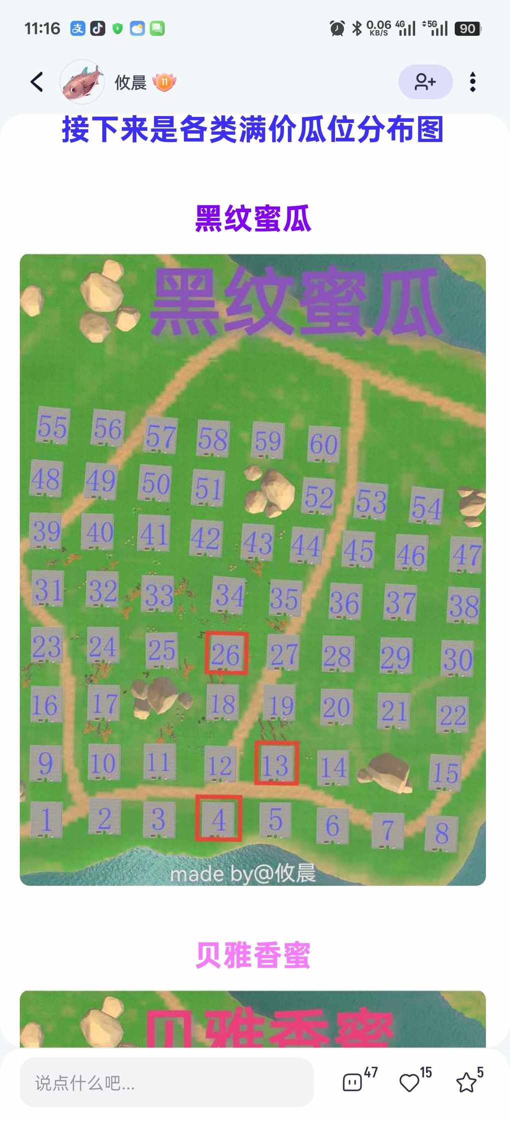 第二天他也去我说的地方去看了,并发了分享我说的满价瓜位置的帖子,(今天我说了他把自己分享我说那个位置的帖子删了)