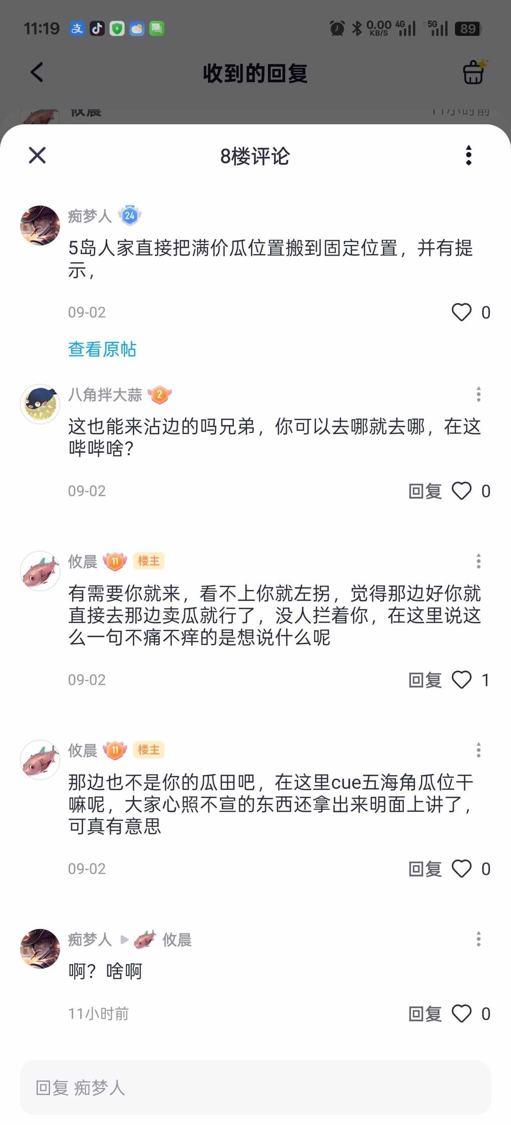 昨天看到有个人发180_270满价瓜的位置,我看着并不方便,然后我评论了一个180_270更加方便的满价瓜位置,然而楼主莫名急了,说了一堆,