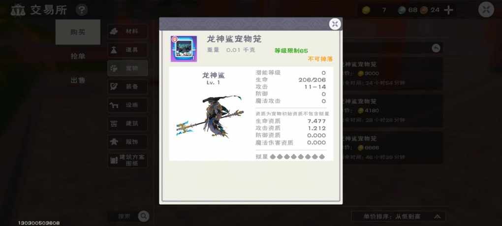 这只已经很不错了,有7.4生命资质了。一些歪瓜裂枣打满生命资质都没到7的。。。