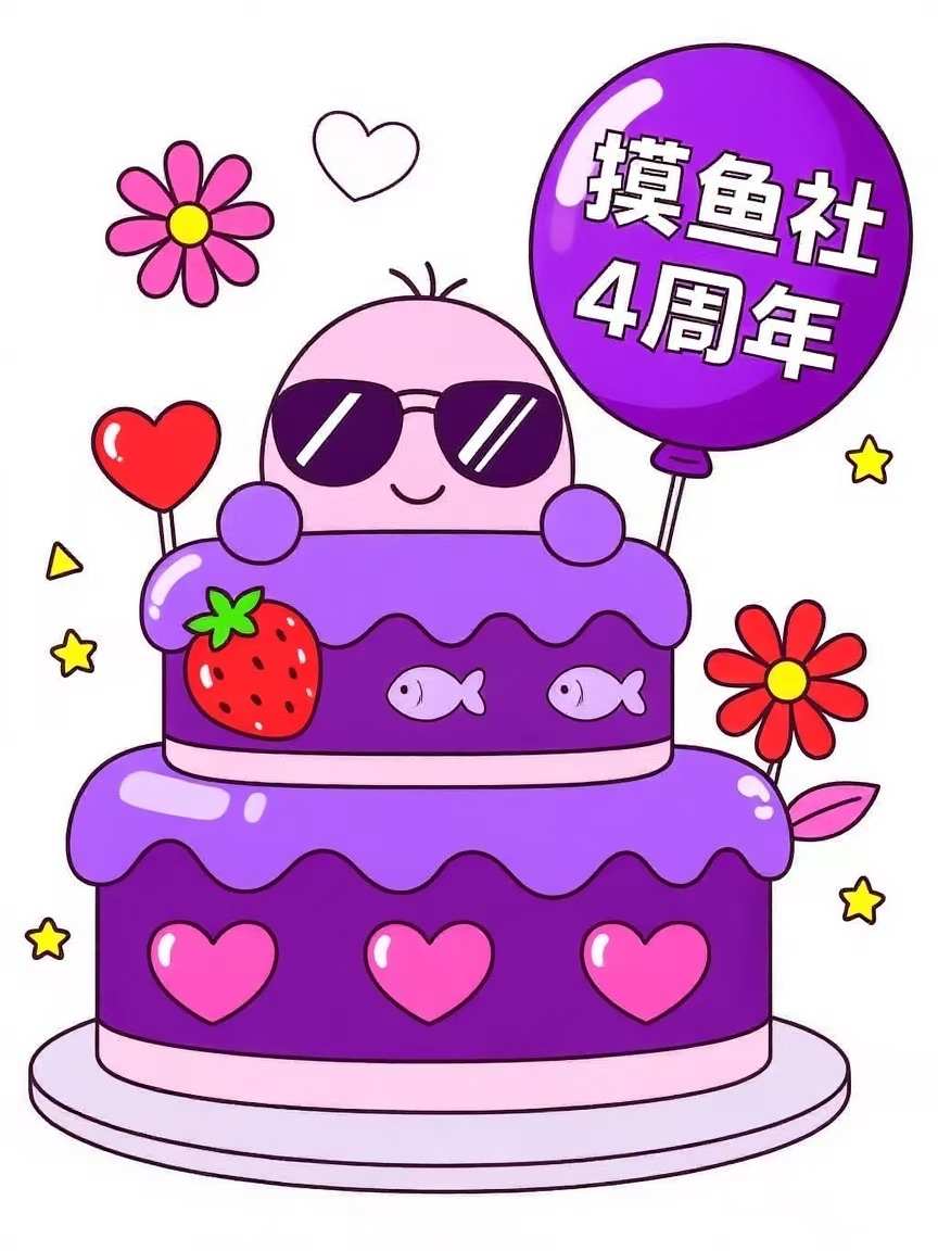 生日快乐🎂咱摸鱼社4周年的色彩设计,主色调必须是咱标志性的紫色呀!这紫色多妙,又神秘又梦幻,就跟游戏里那些奇幻场景似的。浅紫像游戏里的轻烟仙境,深紫像未知秘境。再加点草莓红、花朵橙这些亮颜色,跟游戏里的惊喜和欢乐一样,让整个设计既保留咱的特色,又贼有活力,多符合咱摸鱼社的调调~