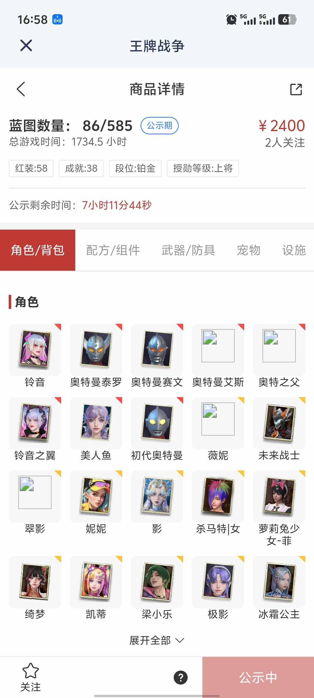 5级双持 6级傀梦qbz 5级兔子 5铃音 角色升级材料可以生一个三级的或者重置铃音无需购买别的可直接升级另一个满级 65迈开荒马 金甲龙 独角兽 半成品欧特都是配好基因的 五十多个徽章购买可赠送仁魔gt3+精调数据 可刀