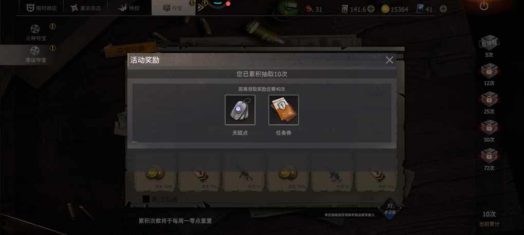 贸易钥匙抽五十次给多少天赋点?