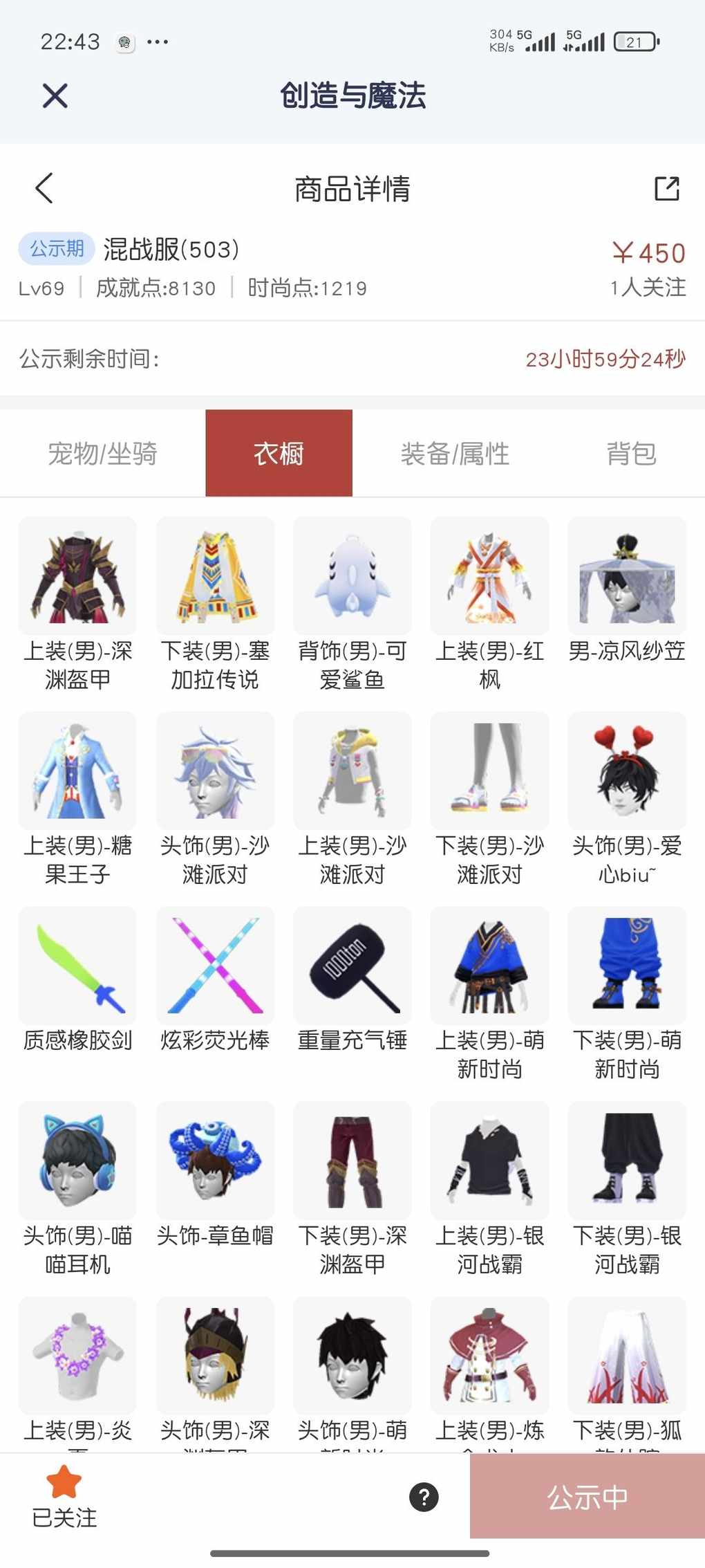 快来看看新上架的角色~区服:和平服(313)-角色等级:Lv69 https://cbe.yingxiong.com/?to=%2Fcm%2Fgoods%2F272367&gameName=cm 来自舱宝鹅(创造与魔法)