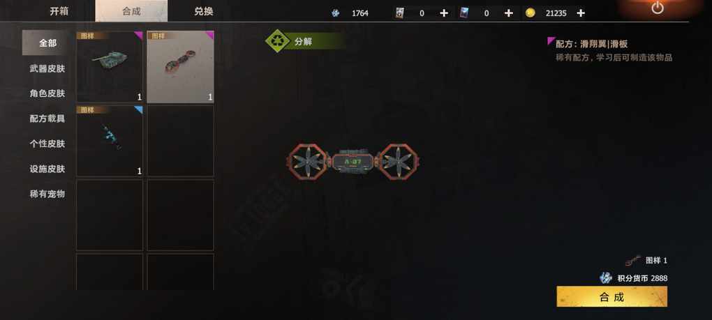 想着上小号领个箱子,抽出来分解换坦克,没想到一点出了个滑翔翼,关键是他之前给我出过一个重复了