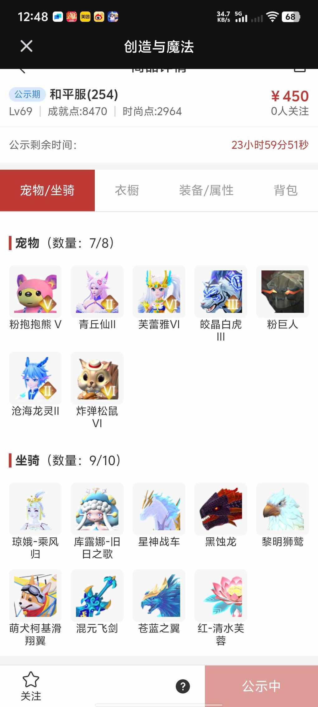快来看看新上架的角色~区服:和平服(254)-角色等级:Lv69 https://cbe.yingxiong.com/?to=%2Fcm%2Fgoods%2F273091&gameName=cm 来自舱宝鹅(创造与魔法)