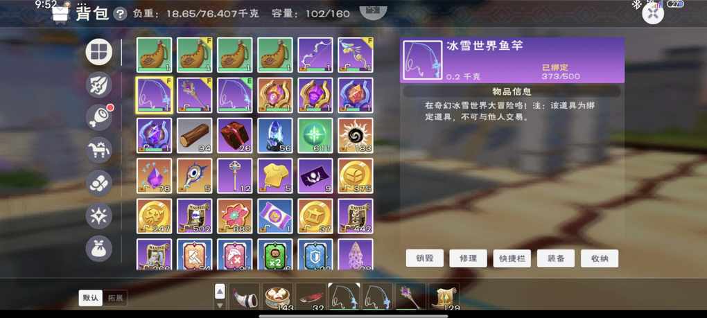 有没有可能是你用的那个鱼竿皮肤,没切换
