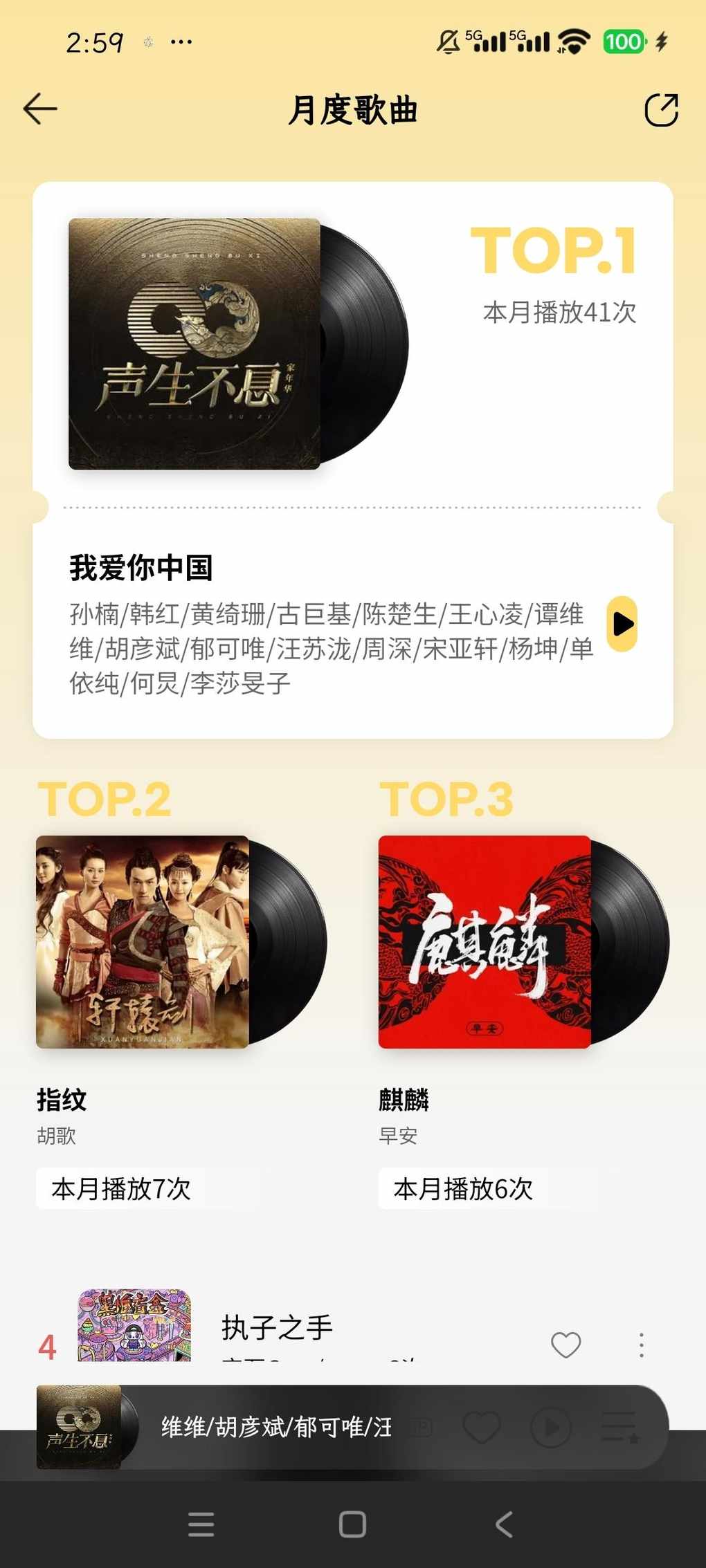 我要不扒出最近听歌清单,还真成作秀了,我是真心觉得好听,强烈推荐大家可以听听,还有一句话:不论你是真爱国还是假爱国,爱国放心里没错,爱国挂嘴边更并不是为了作秀,就算没有为国家做出过贡献(比如我),但至少爱国我可以说出来,而不会觉得这是个错误是在作秀