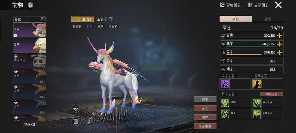 羽化不如神性的,我的大号羽化配了精灵鹿,奇美拉翼讯足5加喜欢的食物才飞175,小号神性配了夜骑兽角,没有讯足能飞178