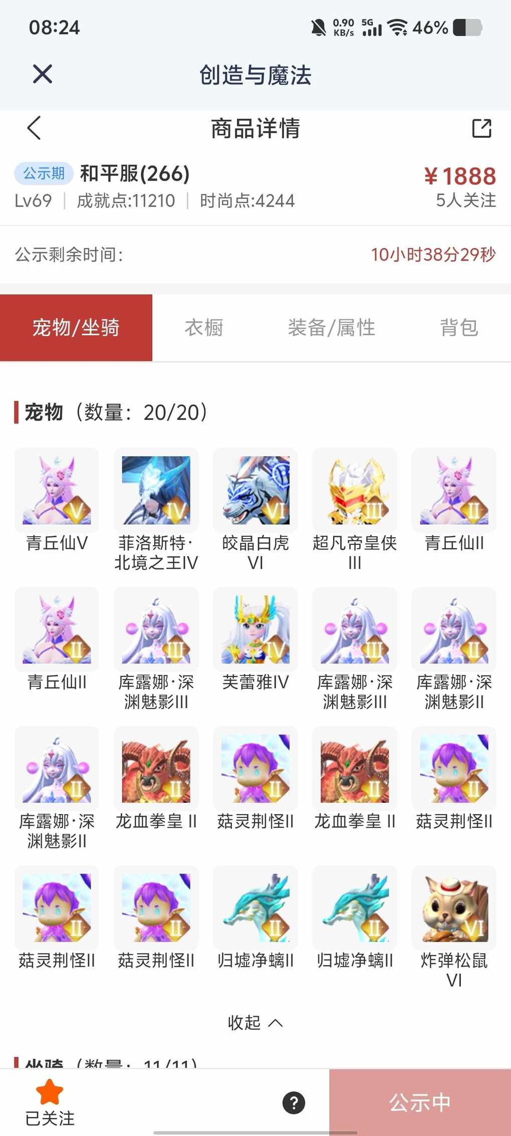 快来看看新上架的角色~区服:和平服(266)-角色等级:Lv69https://cbe.yingxiong.com/?to=%2Fcm%2Fgoods%2F275006&gameName=cm来自舱宝鹅(创造与魔法)