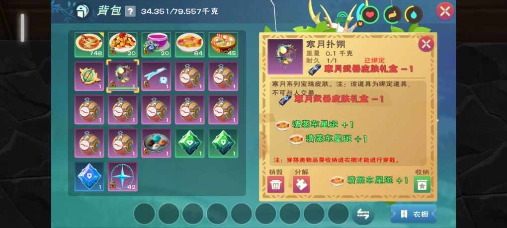 买了105个盒子,最后一个才出镰刀皮肤,都做好什么都没有的准备了,后面又开了32个,也是最后两个出了一个爆炸弩的皮肤,开的挺难受的,一堆食物