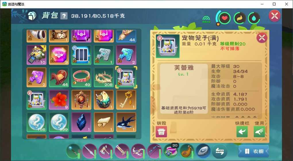 但是和平服只需要看攻击就行了基本不打架而且芙蕾雅不拉仇恨,我这只攻击满初始满资质,回血拉满,生命资质逆天,满级后应该可以弥补唯一的缺陷初始生命
