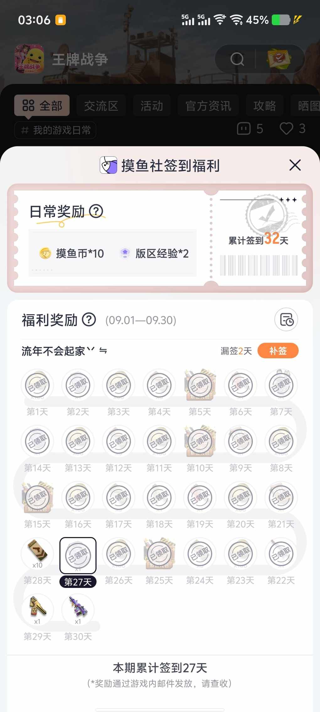 这个要补签吗就差两天满勤一共就290摸鱼币还不知道第三十天给的值不值有点舍不得