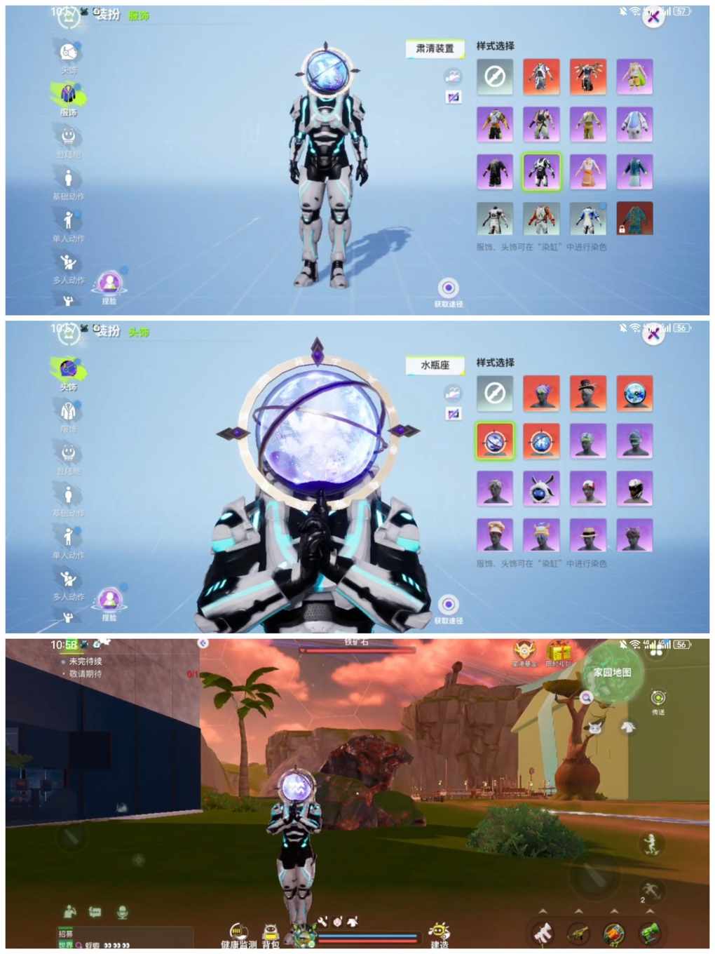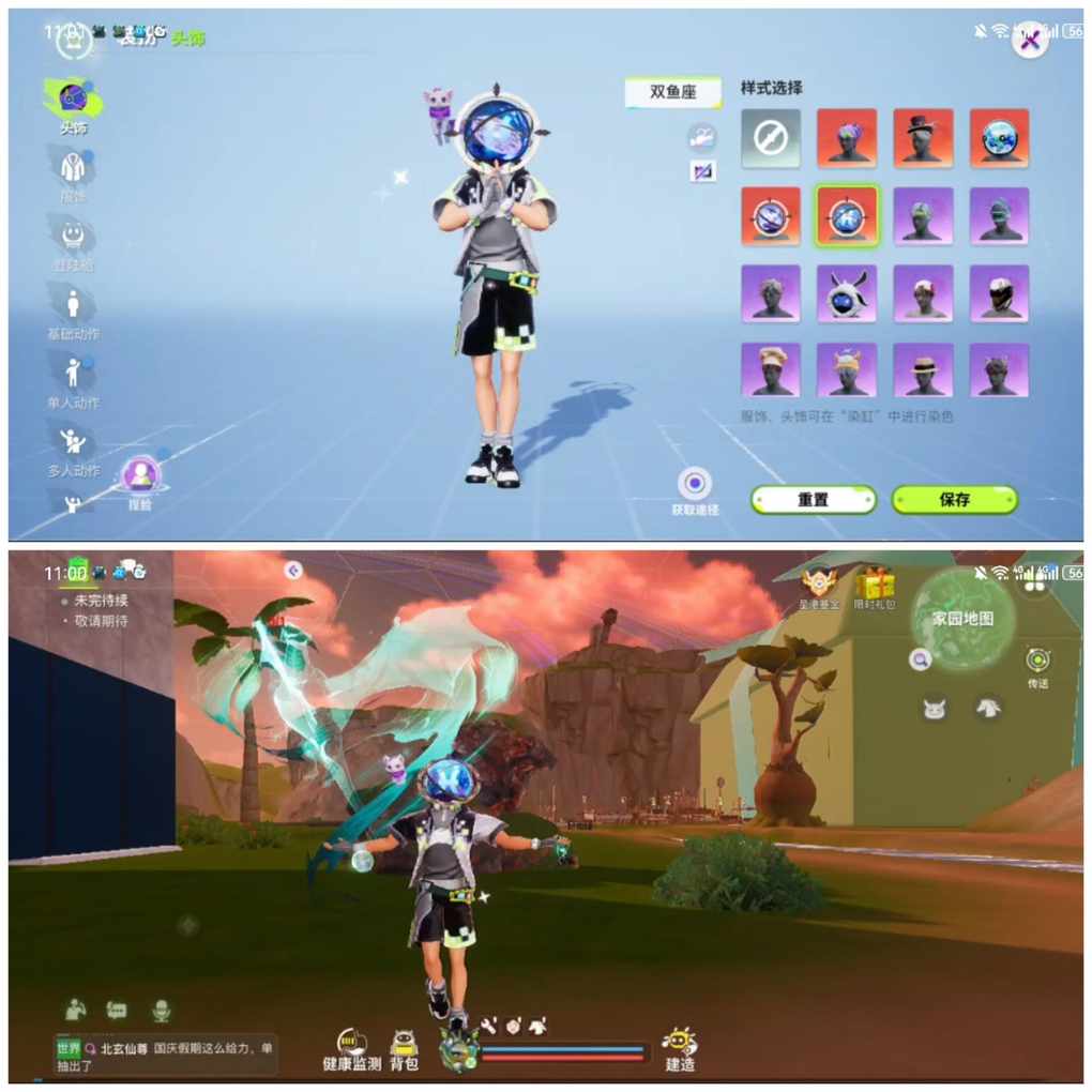 小虎是双鱼座,所以对双鱼座头套情有独钟,双鱼座头套中间有神秘的双鱼座符号加上亮亮的,星座细分的话,严格来说小虎是太阳双鱼和月亮水瓶,所以说也有一点喜欢水瓶座头套的,水瓶座头套和双鱼座头套差不多,也是中间有神秘的水瓶座符号加上亮亮的,然后是蔚蓝星球头套以星球为基础加上可爱表情,小虎觉得很可爱,小虎很喜欢这三个头套,所以分享给大家。接着是衣服搭配了,肃清装置衣服是一套装甲衣服,科技风满满,有装甲护身很有安全感,再骑上摩托车坐骑很酷的,玩转像素衣服会有一个可爱的精灵在身边,探索星球不孤独,加上休闲的风格,很帅的好吧,这套休闲风搭配就好像外出度假一样,十分悠闲,刚好今天是10月1日国庆节,小虎在这里祝各位远航者国庆假期快乐!