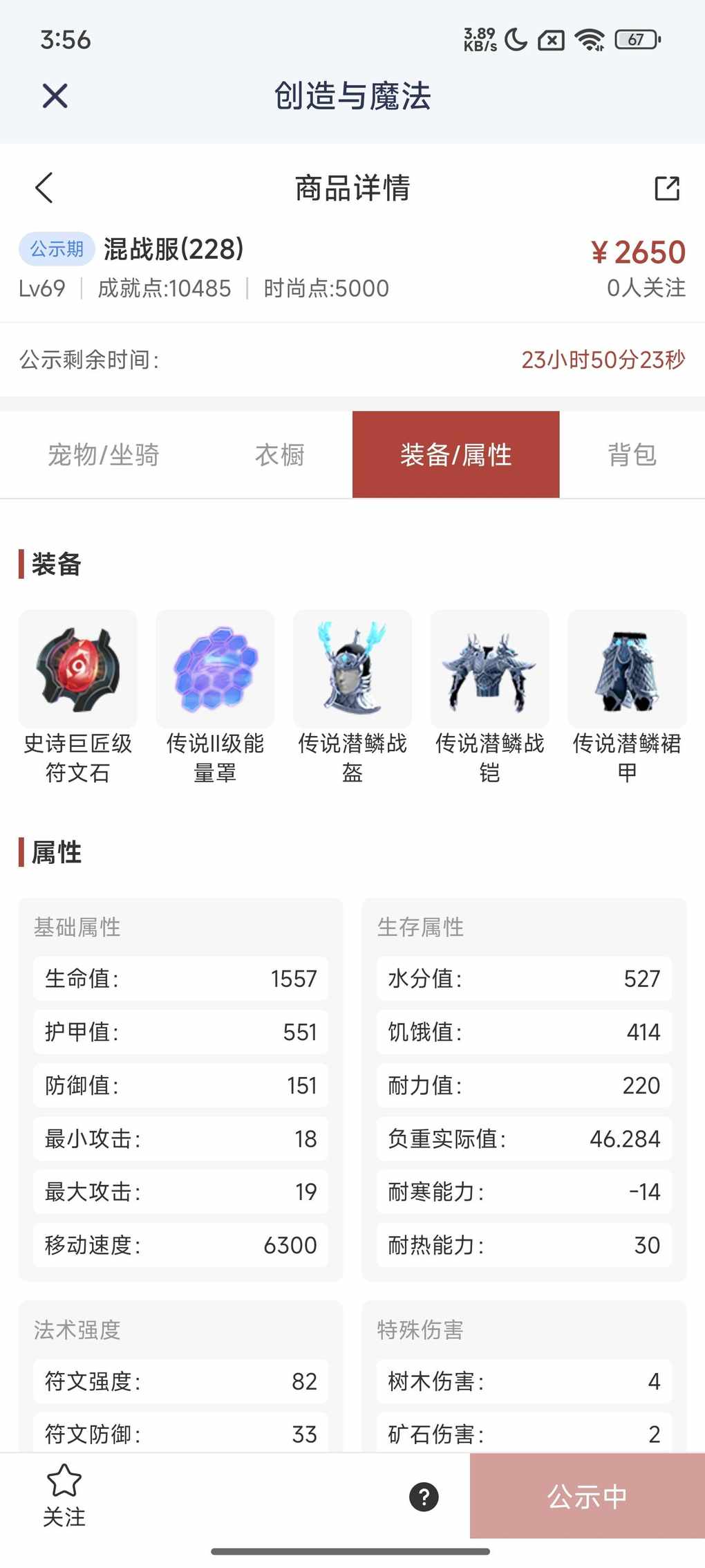 快来看看新上架的角色~区服:混战服(228)-角色等级:Lv69https://cbe.yingxiong.com/?to=%2Fcm%2Fgoods%2F282212&gameName=cm来自舱宝鹅(创造与魔法)有5个载具飞天家园皮肤背包里还有一只六阶巨人自己看吧。