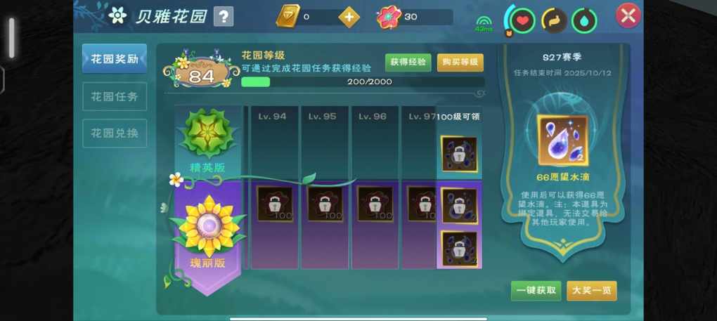 你得花68进阶花园,奖励能领很多1000经验卡