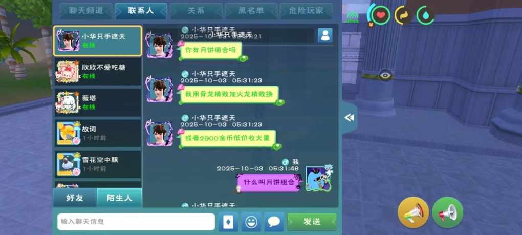 104到173的朋友注意了,不要盲目购买或换取自己不认识的东西,那段时间我刚好退游了我以为月饼组合是一种绝版的衣服结果是装饰品,他特意等了20分钟以后才用那个号跟我说话,但是正好我这20分钟没有在世界上喊出东西,你想想平时收个东西都是多一铜也不要,利润太大没有人平白无故给你2000金币