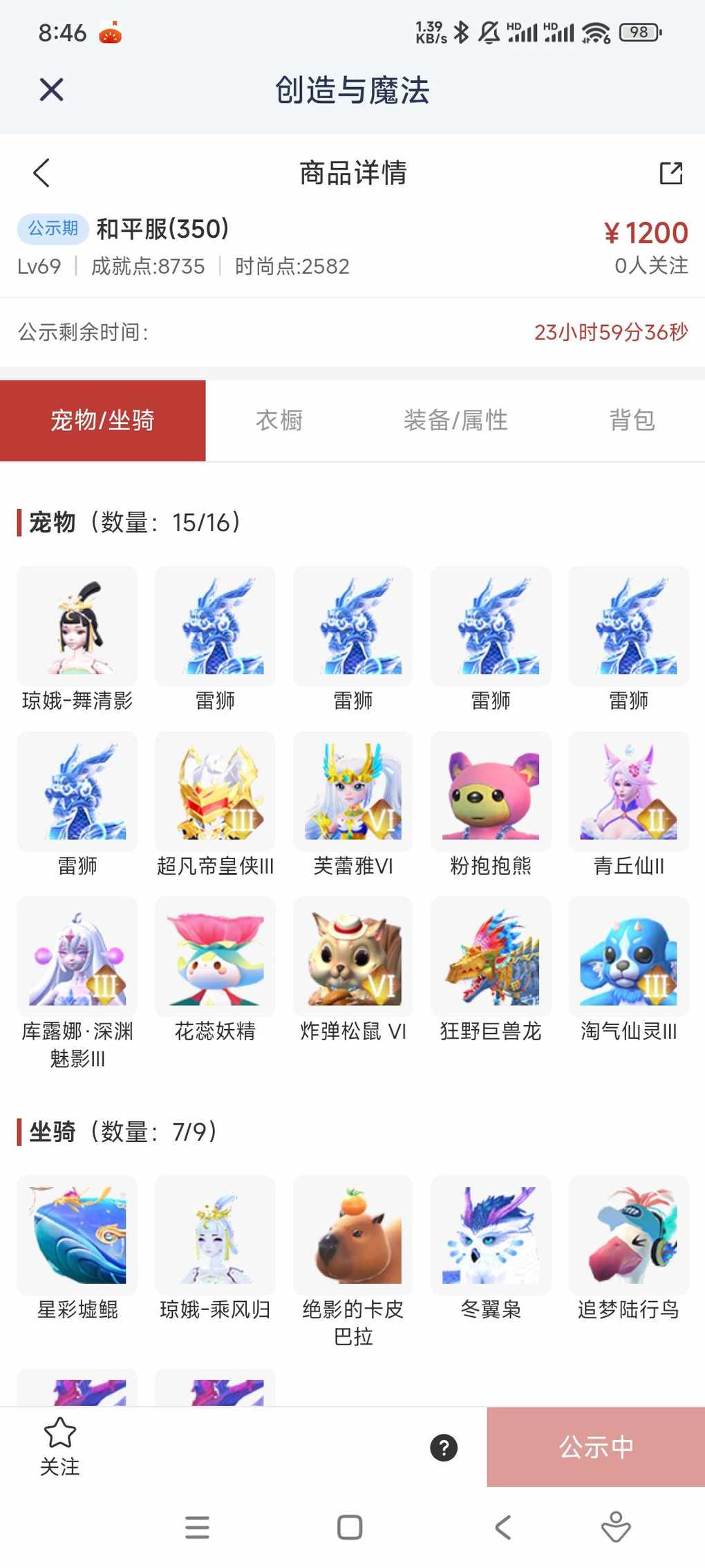 快来看看新上架的角色~区服:和平服(350)-角色等级:Lv69 https://cbe.yingxiong.com/?to=%2Fcm%2Fgoods%2F285077&gameName=cm 来自舱宝鹅(创造与魔法)